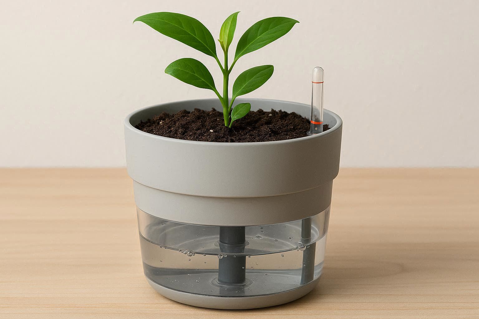 This innovative product combines a decorative planter with an integrated, self-regulating watering system. It consists of an outer decorative pot and an inner planting pot with a built-in water reservoir and a wicking mechanism (like a fabric rope or porous ceramic cone). You fill the reservoir through a dedicated fill tube or spout, and the soil draws water up as needed via capillary action, providing consistent moisture directly to the roots.
